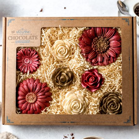 Lyxig extra stor utsmyckad presentförpackning med chokladblommor