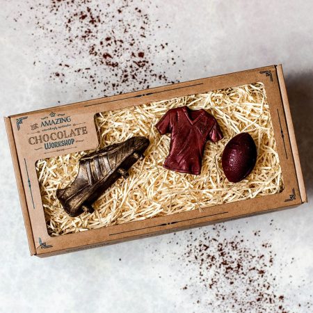Rugby älskare Choklad Presentset – boll, röd skjorta och känga